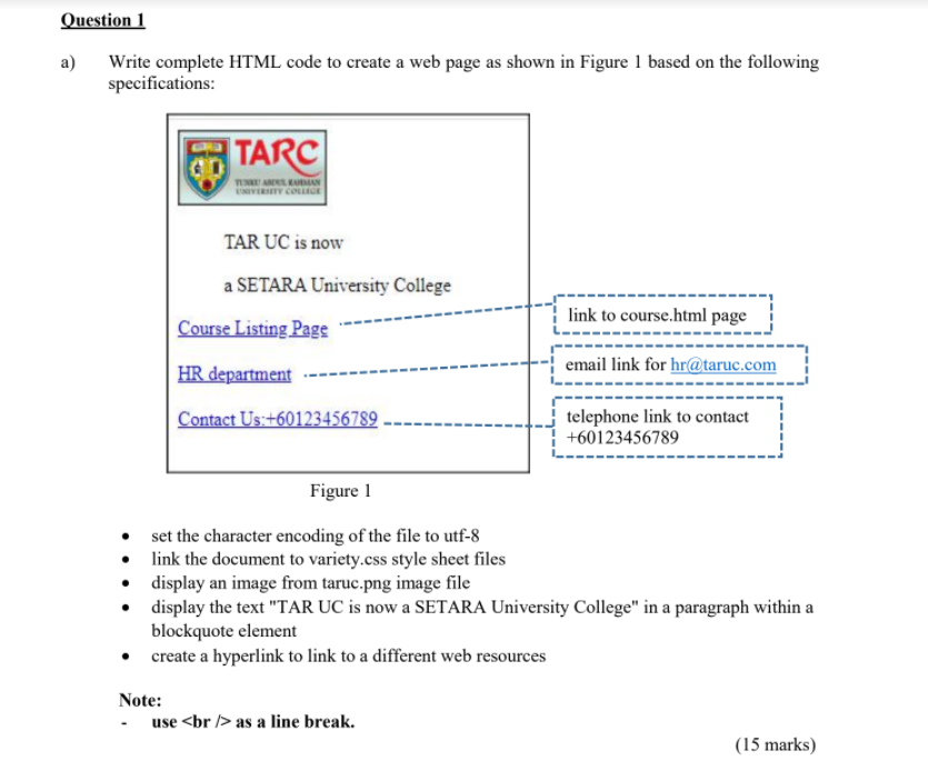 Solved Question 1 A Write Complete Html Code To Create A Chegg Com
