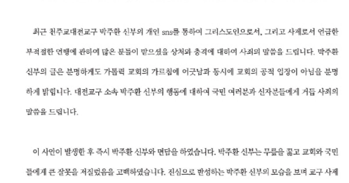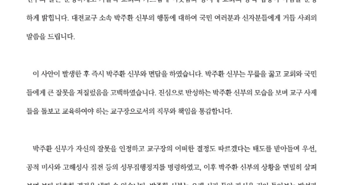 또 박 신부의 공적 미사와 고해성사 집전 등 성무집행을 정지했다.
